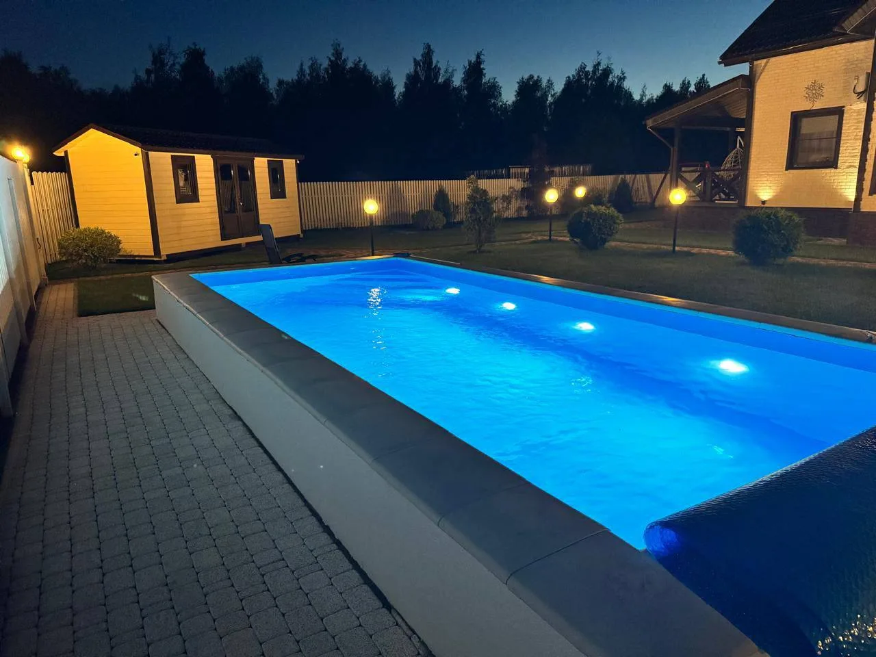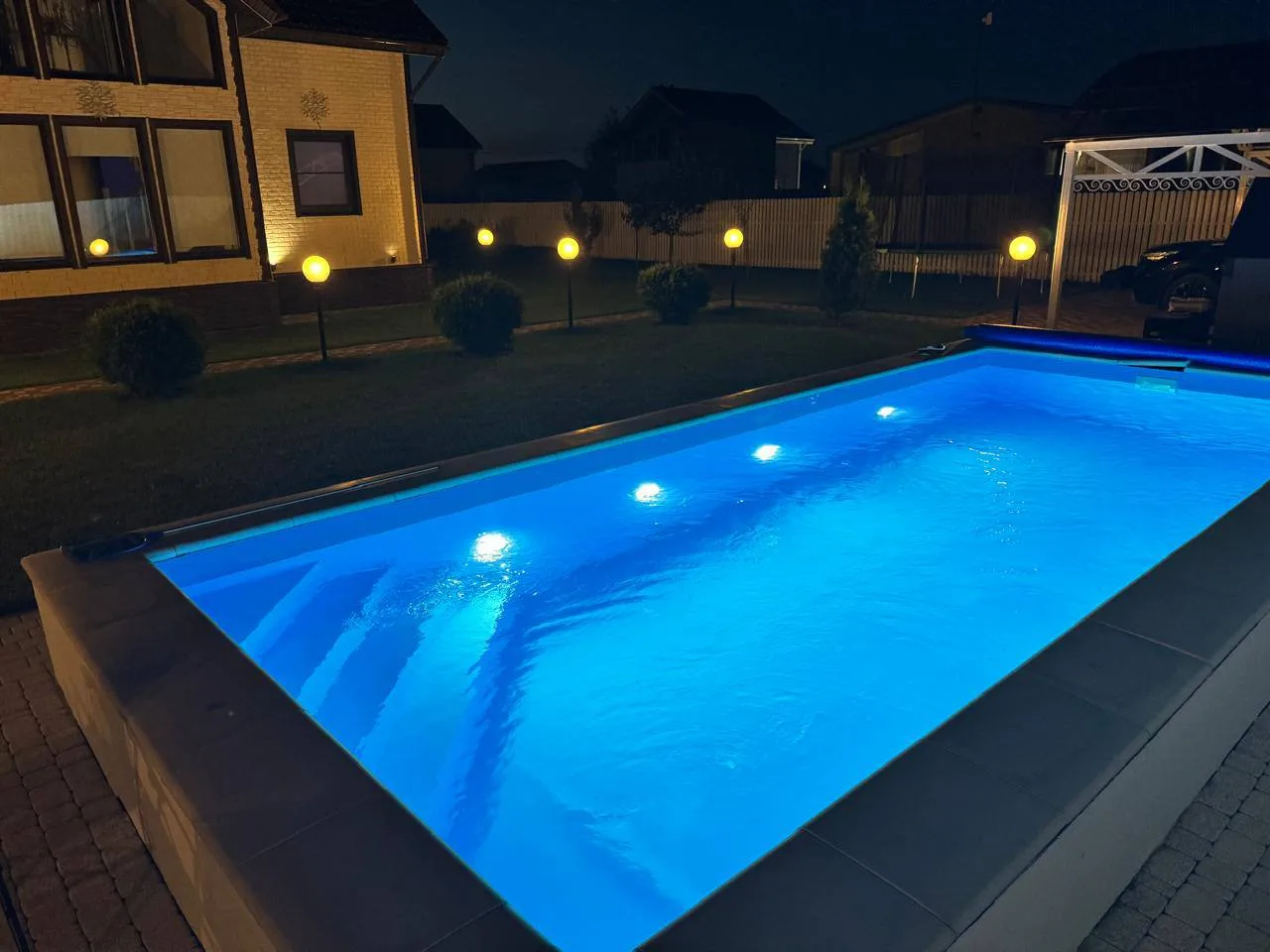 2. Фильтрация с организацией циркуляцией посредством врезки закладных деталей, а также подсветка воды с помощью прожектора с Led лампами происходит по умолчанию. Без циркуляции и фильтрации бассейн не может функционировать. Подсветка согласовывается при выборе, но 95 % заказчиков воспринимают ее как необходимый эстетический элемент.